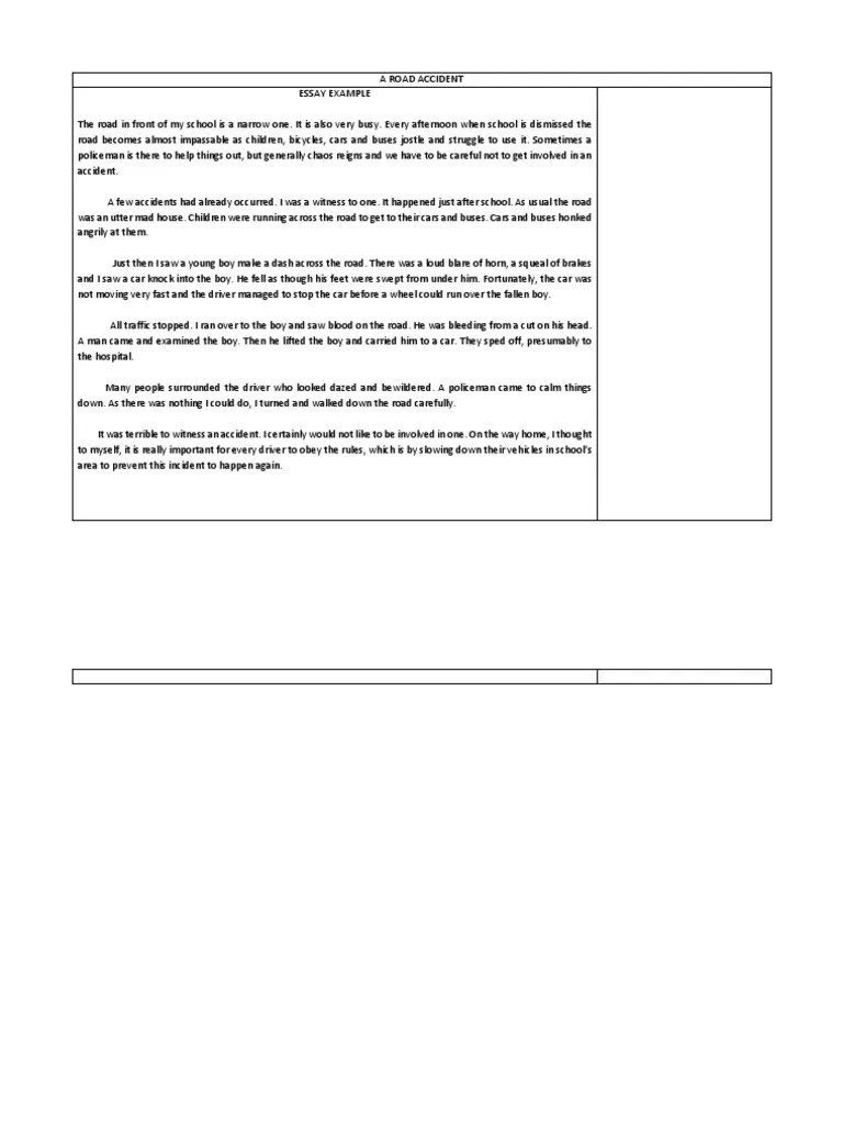 On 12 july 2009 i witnessed a horrific car accident that i bet was the worst that ever occurred in nelspruit. If you need help writing essays for college, check out these great essay writing tips. A personal essay is a short work of autobiographical nonfiction characterized by a sense of intimacy and a conversational manner. Writing an essay doesn't have to be a challenge. First of all, drinking is not a good habit but, let us suppose for a moment, you have to take . Accidents or mishaps keep happening every day and every now and then. Essay #essayinenglish #essaywriting #aterribleaccident #accidentnews #englishessay #handwriting #calligraphy #calligraphyart #handwriting . Last year i got involved in a massive car accident. One must always wear their seat belt, only drive when the . Essay on a terrible accident ✍ on christmas day in the year of 2006, i got a gas scooter. I was so happy when i got it, because all the . "car accident.his wife in labour.memory may never return.tragic accident". The incident was so horrible that, sometimes do wonder why had to be witness to it.